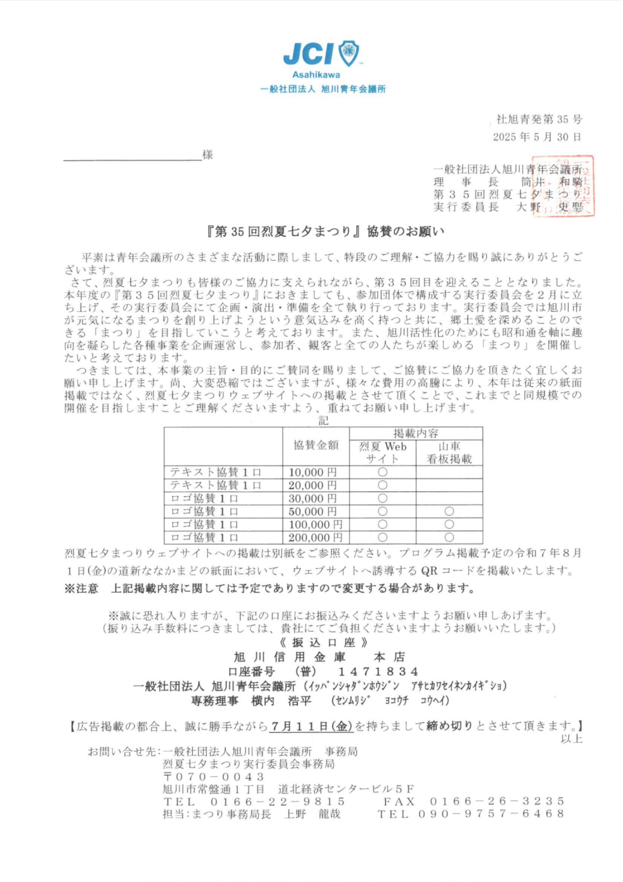 多数のご協賛誠にありがとうございます